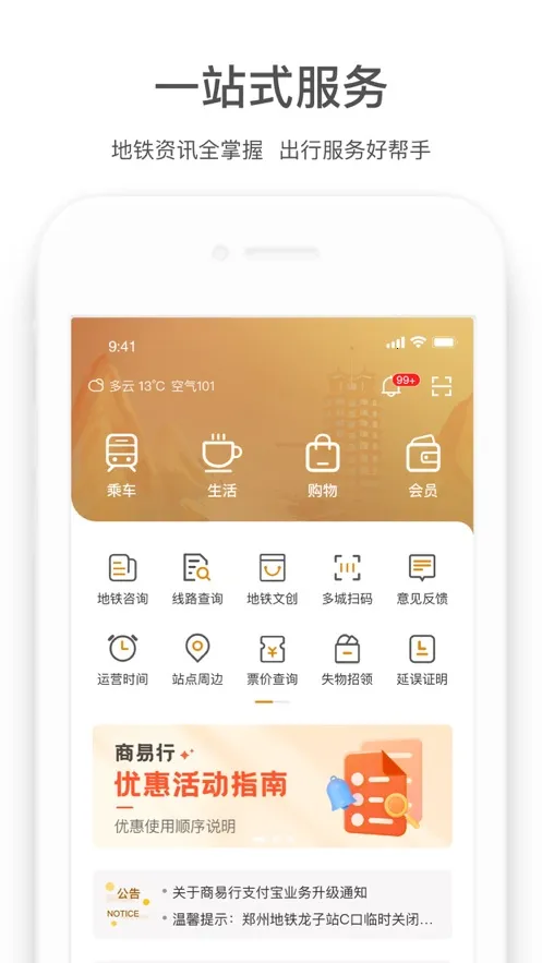商易行是一款专注于城市公共交通智慧出行的应用,为郑州地铁出行用户提供诸多便利。