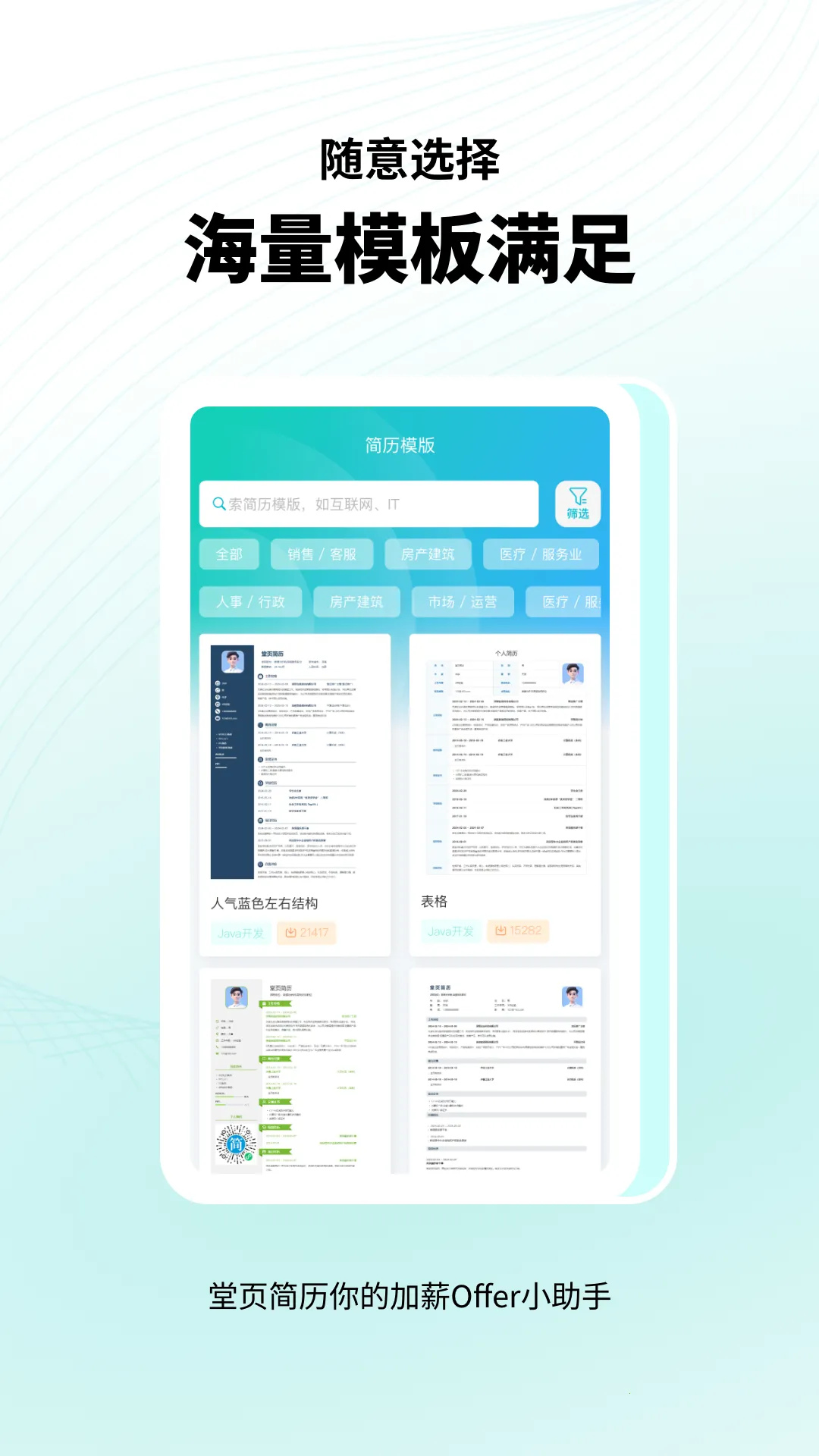 堂页简历模板涵盖多个行业和职位,提供海量模板,满足不同用户对简历风格的期待。