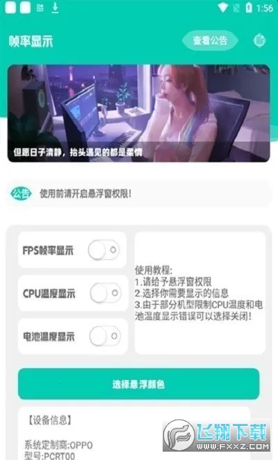 帧率显示器是一款实用的帧率监测软件,能帮助用户实时了解设备屏幕的帧率等情况,具有以下特性: