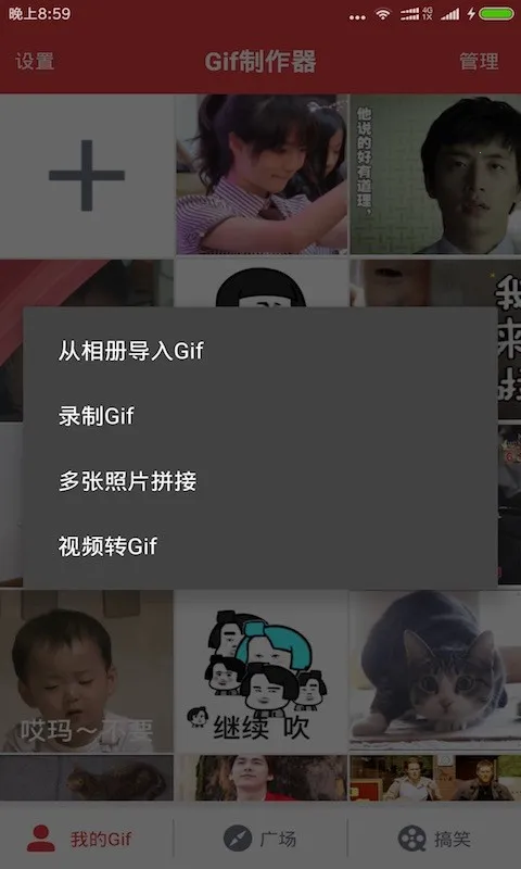 3. 制作方式多样:支持通过拍摄视频、图片合成等方式制作gif,还能自定义制作,实现倒放等效果。