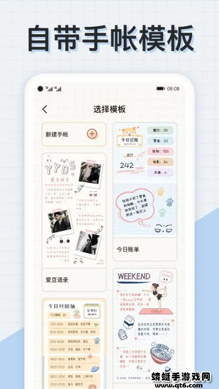 1、尽情创建自己的手账,方便每次记录使用,还有模版可供选择。