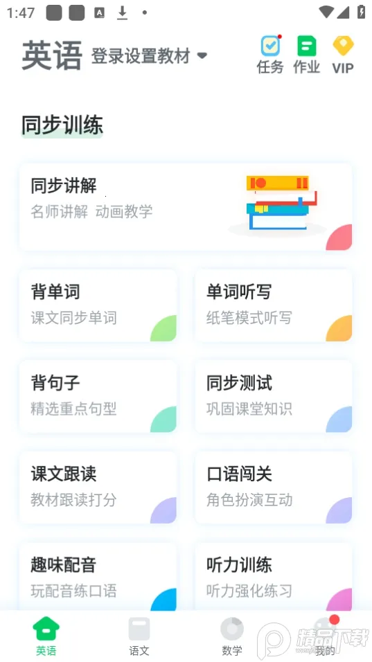 1、教材同步:覆盖全国各地小学教材,与人教版、科普版、冀教版等300多本教材匹配,实现课本点读、同步讲解、单词背诵等功能,满足学生课前预习和课后复习需求。