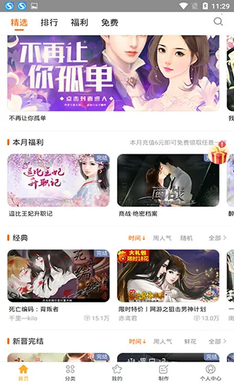 3、丰富作品库:数十万部原创精品作品,覆盖现代、古风、科幻等六大类别,无论热门冷门,都能找到心仪故事。