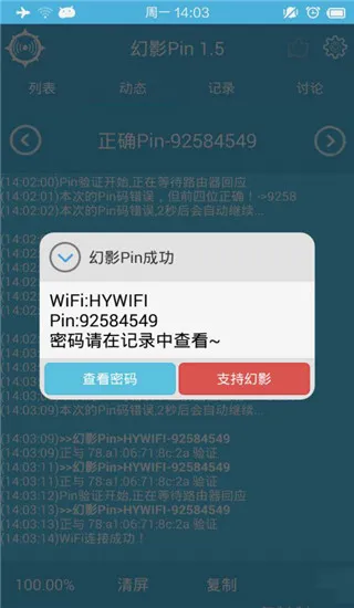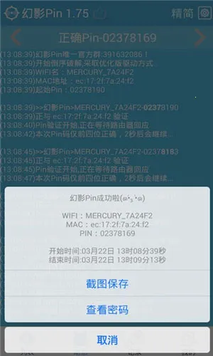 幻影pin可破解无线网络密码,无需root,利用算法和技术通过WPS漏洞尝试连接。界面简洁操作简单,能搜索众多无线网并快速破解,无杂乱广告,不论联网与否均可手机破解,绿色安全、兼容性强。