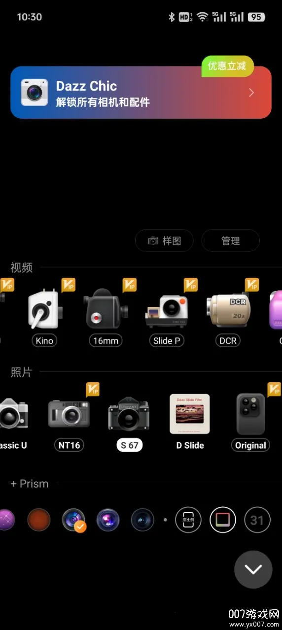 2、相机丰富:多款型号与款式的模拟相机工具,丰富拍摄选择,适配不同创作主题与场景。