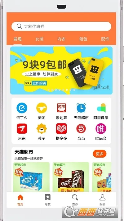 3、在这里购物轻松,还能搜索各类商品优惠券,领券购物超方便。