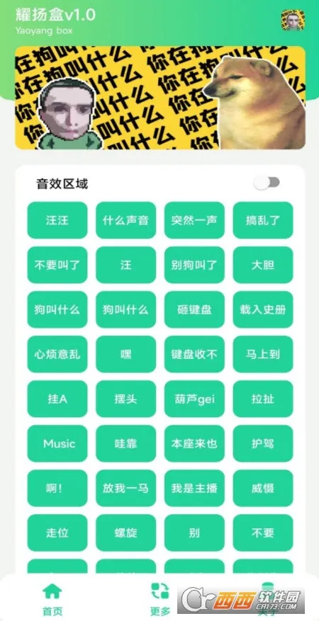 3、耀扬盒使用方法简单,开启悬浮窗模式即可一键使用,主页有超多音效能直接用,点击更多还能下载其他搞笑语音盒。