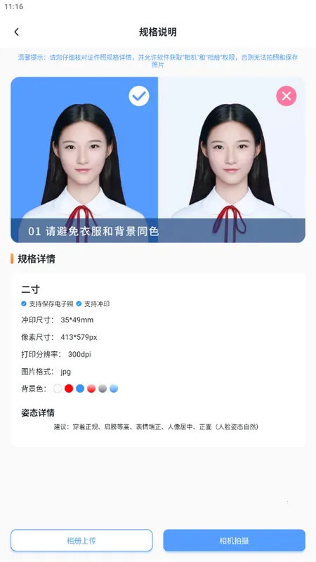 旗帜照片处理工具能帮你轻松搞定各类照片处理需求。它是一款超实用的图片编辑软件,特别适合处理证件照。使用时,打开软件,里面有十几种类型上百种证件照模版,比如英语四六级考试的证件照规格等。你可以用手机内置相机在线拍照,提前授予权限就行,要是不知道咋拍,点击屏幕中间操作指南,会展示拍照要点。已经拍过的直接从手机相册导入图片。系统能自动检测照片合不合格。它的功能超强大,有背景替换、尺寸裁剪、光线微调等工具,还支持一键在线抠图,能精确抠取主体去除背景。有图片消除笔可消除污点瑕疵,还有贴纸、滤镜、画笔、文本、加相框等功能来编辑装饰照片。能将处理后的照片以多种格式导出,满足不同平台上传要求,求职或考试报名用它超方便,赶紧试试吧!
