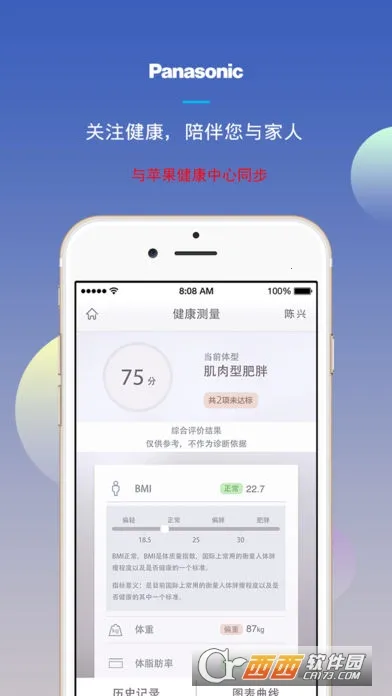 3、支持尿液体、脂、心率、心电和血氧等健康数据的测量(需配合松下智能健康设备使用),测量数据可通过Wi-Fi传输至app端,方便随时查看和管理自己的健康状况。