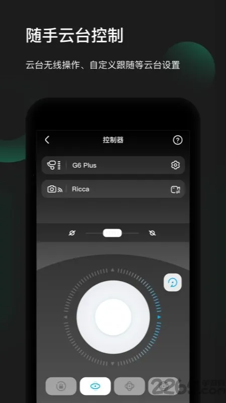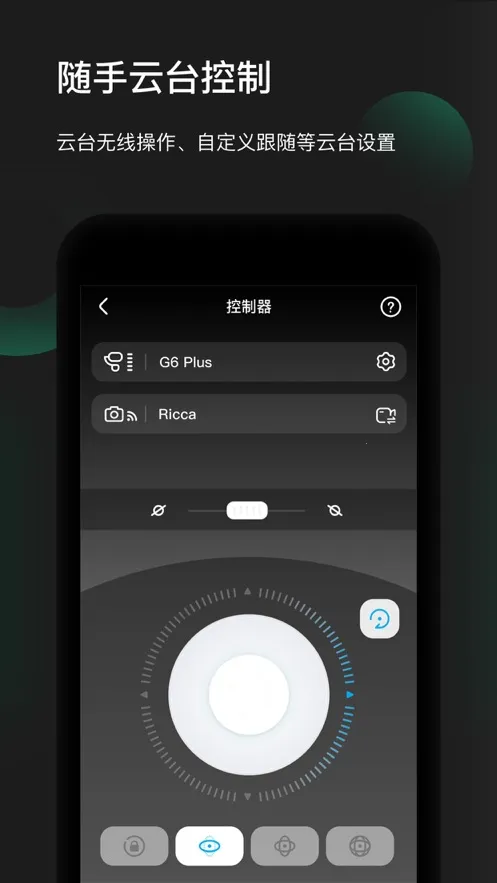 2. 连接云台后,能在App内完成云台操控与个性化设置,包括云台模式切换,如跟随锁定等常见控制逻辑,转动速度与灵敏度调节,自定义按键与控制项,部分云台功能开关与校准引导。