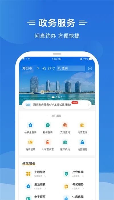 椰省事是海南省官方打造的全域政务与生活综合服务软件。依托省级一体化政务服务体系,整合多元资源,实现线上办事。具有电子证照亮证、自贸港政策专区等特色,数据安全可靠,覆盖全面,跨端适配流畅,操作门槛低。