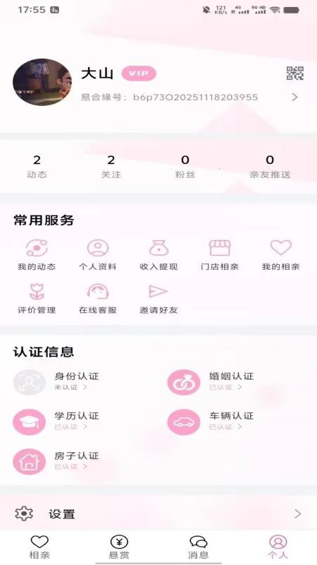 用户需对自身身份、学历、婚姻状况、车辆及房产等进行认证,方可与平台异性在线交流。
