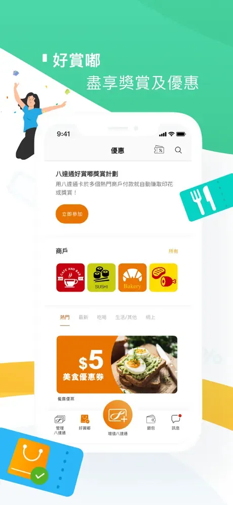 2. 可搜索各种公共交通出行补贴优惠券,查询八达通余额和消费记录,方便管理日常开支。