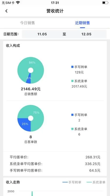 3. 营收统计:将各项营收数据以可视化图表工具进行统计展示,便于用户直观清晰地了解每天每月的营收情况。