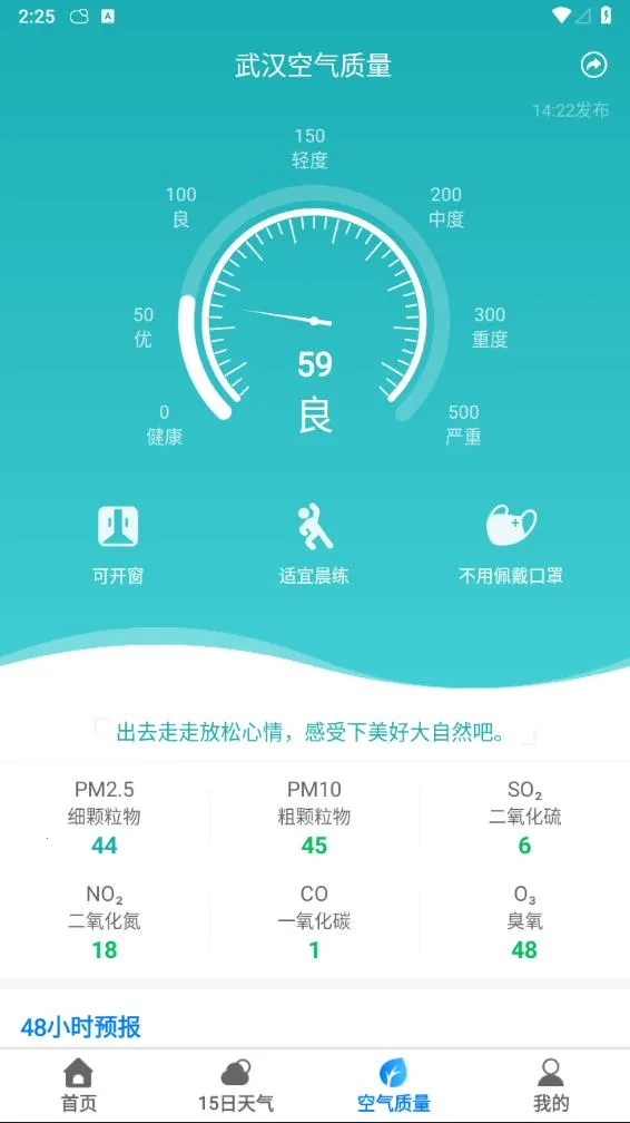 2. 涵盖了6项空气质量指标,生活服务钓鱼天气,农业天等,为用户出行和生产生活提供贴心服务。