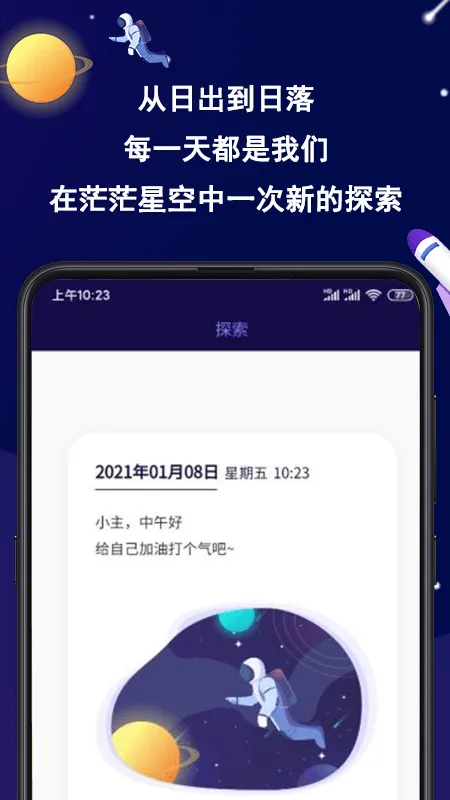 1、创新的星空主题设计,以浩瀚宇宙为灵感,提供多款星空背景与动态特效,可随心切换昼夜模式,营造极具仪式感的记录体验。