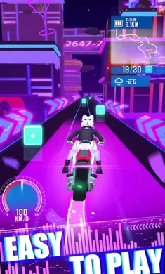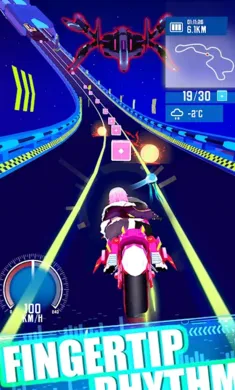 1. 独特节奏驱动操作,动作与音乐节拍完美同步,玩家依据音乐节拍控制加速、转弯和跳跃等动作。