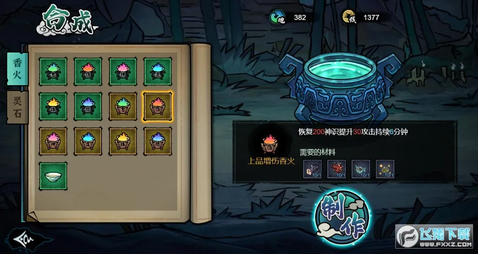 2、收集资源升级:收集糯米香火等资源,升级临时法阵与专属道术。