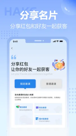哈客app是专业销售类办公软件,可精准自动化营销推广,方便找客源供货商。能创建客户档案、管理销售机会等,还具多种优势特点,如精准营销、一键生成流程等,助用户提升业务,另有网站优化功能。