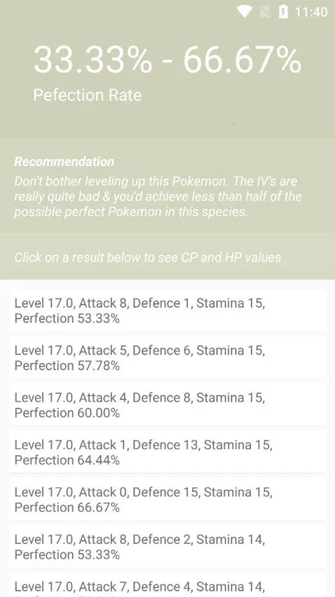 4、智能培养决策辅助:计算结果自动关联进化后CP范围与突破消耗星尘,评估培养性价比。集成PvP对战评级系统,标注联赛推荐度,给出优先升级等明确建议。