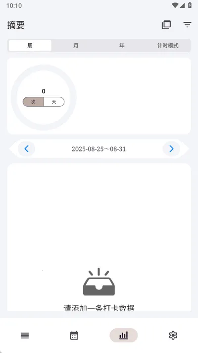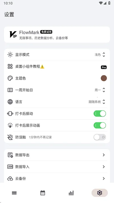 1. 极简设计:界面仅保留打卡、统计、设置三大核心模块,无社交、无商城、无冗余装饰,采用MaterialYou设计语言,深色模式自动适配系统。