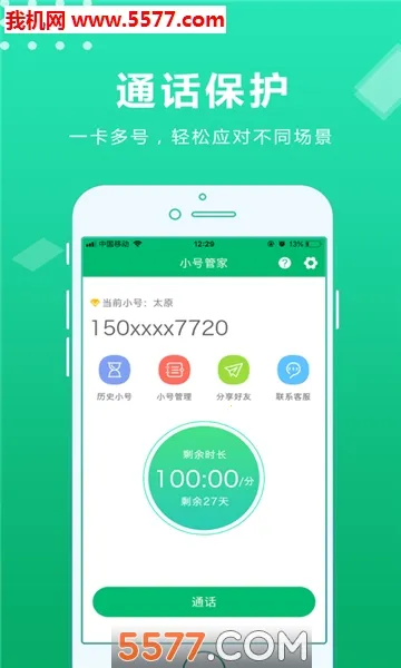云小号是一款超实用的电话短信应用。它能对通话号码端到端隐藏保护,认证后无需换卡,同一部手机就能实现一卡多号。新号码和本机号一样,正常接打电话收发短信。