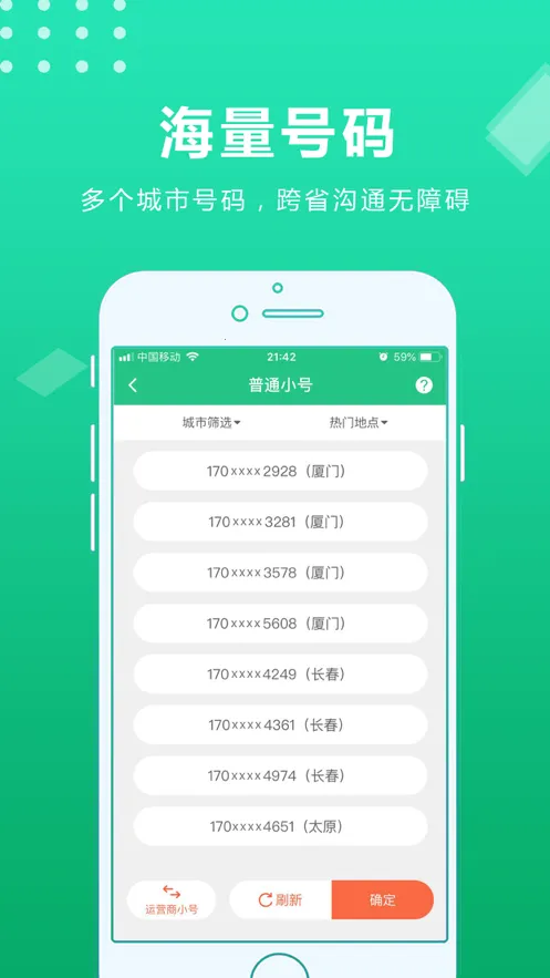 3. 提供全国 32 个省份的电话号码作为专属小号,满足长期使用需求。
