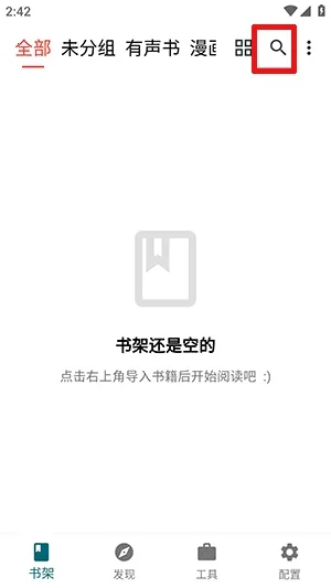 3、点击书架板块,点击右上角的搜索功能。