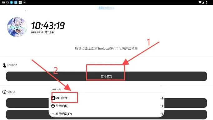 1、先进入软件并点击启动,选择mc启动