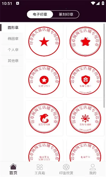 1、丰富印章模板:提供圆形、方形、椭圆等多种形状的印章模板,可按需选择。
