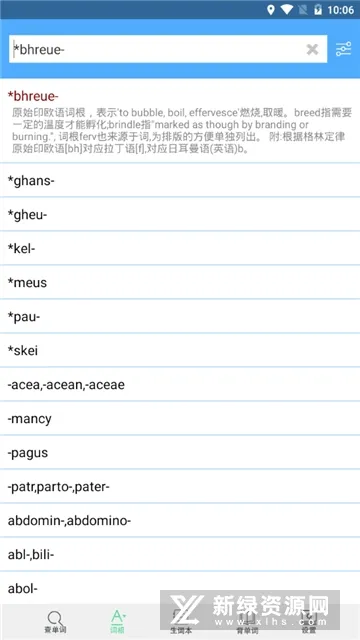 词根词缀字典最新手机版是专注英语单词记忆的移动学习工具。整合多类英语考试词汇库,以词根词缀记忆法为核心,有多种创新记忆方式,标注必考词汇,还具备多样功能特色,持续优化性能提升体验。