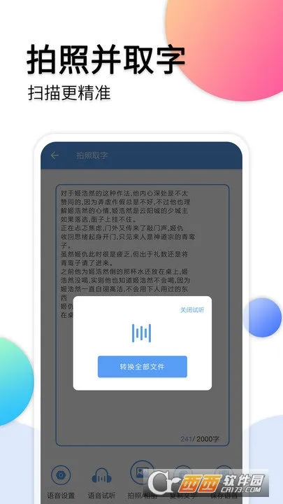 音频转文字助手安卓版是一款功能强大的语音识别软件,支持多种语言音频转文字,能在线录音并一键识别转换。具有文字转语音、音频剪辑等特色功能,适用于广告配音、英语学习等多场景,操作简单易上手。