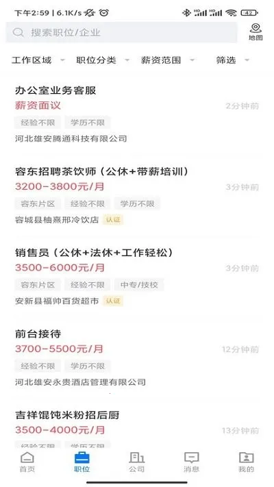 2. 海量岗位每日更新,深度聚焦雄安及周边区域,覆盖多行业,涵盖全职、兼职、实习等就业形式。