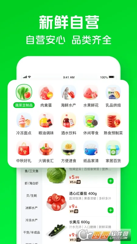 1. 一站购齐,品类丰富,蔬菜水果、肉禽海鲜、酒水饮料等应有尽有。