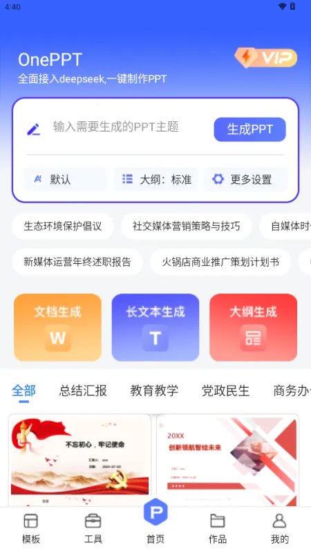OnePPT是一款创新型PPT智能生成工具,借助前沿AI技术为用户带来了高效专业的一站式PPT制作体验。