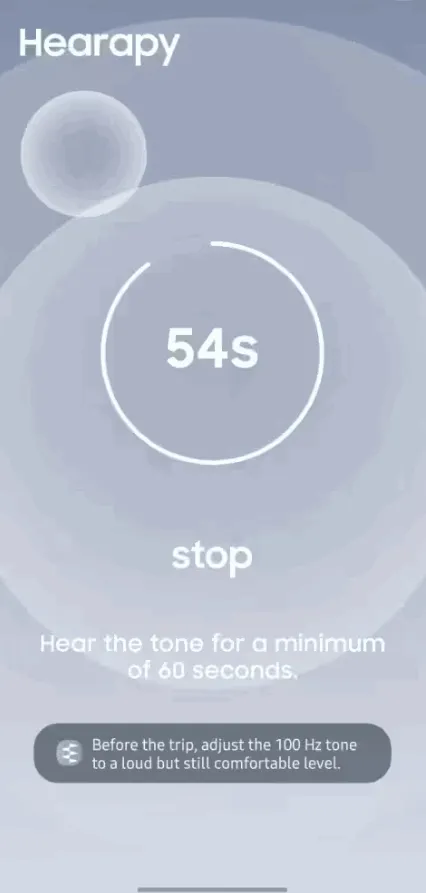 2、播放声音:打开Hearapy,点击播放,默认60秒(可根据个人情况在40-120秒之间调整)。