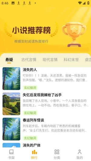 3、排行榜单多样,涵盖男女频热门,助用户紧跟流行。