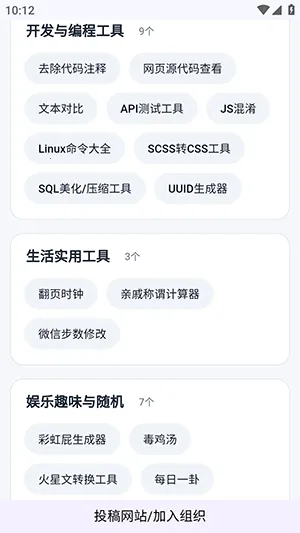 网页工具聚合安卓版是综合工具软件,覆盖多场景,功能强大操作简。免费无广告,工具丰富,含生活、系统、图片等功能。持续更新,界面简洁,无需注册登录,点开即用,提升学习生活效率。