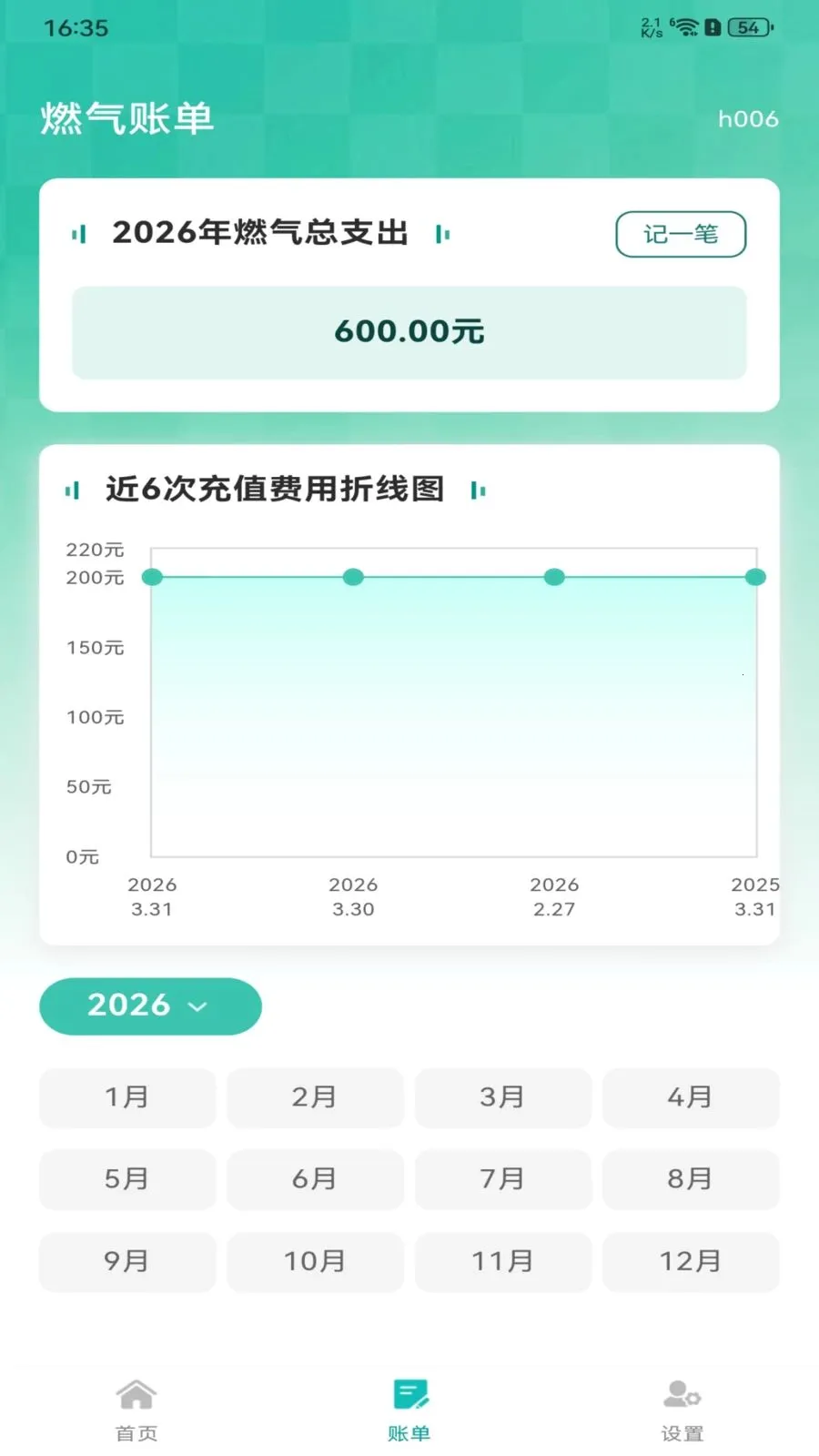 2. 能清晰记录全年用气支出与充值明细