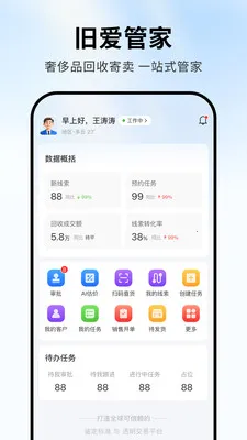 旧爱管家是奢侈品回收行业一线作业工具,支持全流程在线作业,一部手机就能高效完成每日工作。已服务400余名专业管家,日均处理数千笔业务。持续打磨,性能优化,修复问题,提升交互体验,是业务开展与团队协作的可靠平台。