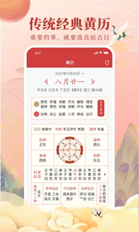 3、软件的数据准确可靠,拥有2000年准确黄历数据,支持离线使用,让用户随时随地都能查询相关信息。