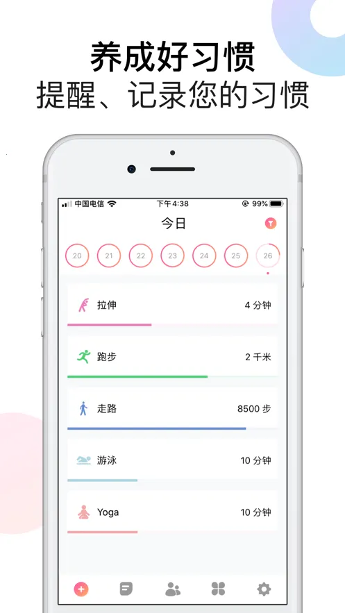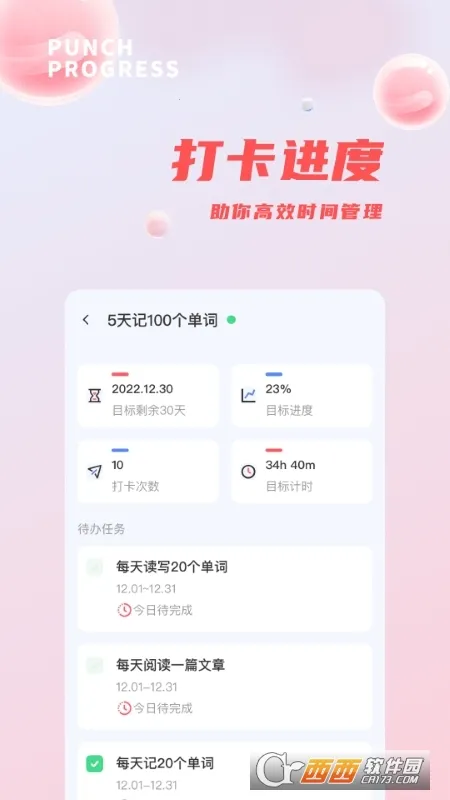 2、极简打卡设计,界面简洁操作轻松,专注每日成长,一键打卡不繁琐。