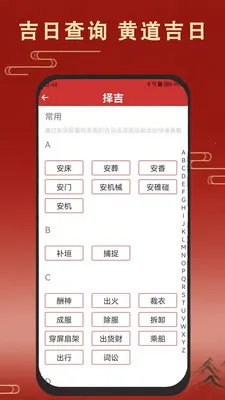 3、择吉列表可查看近期吉日,二十四节气详细介绍助你理解传统文化,今日记录也很实用。