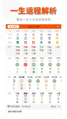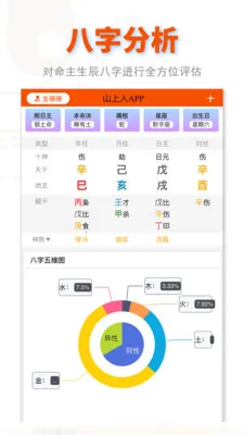 “山上人家”涵盖了丰富实用的功能,能全方位满足你的生活需求。这里有公历农历节日放假黄历天气等日历实用功能,让你轻松知晓日期、安排生活。在线周易起名取名改名,包含五行分析、五行缺失汉字、五行喜用神分析,还免费提供500个高分好名字,帮你给宝宝取个好名。八字分析,从八字排盘到神煞分析、大运分析、流年运势等,为你解析人生。还有八字五行穿衣、五行配饰、五行方位、吉祥数字等建议,以及生辰八字合婚测试,从玄学方位提供指导。个人每日预测,告诉你每日宜忌和吉凶注意事项。100年八字终身命盘,分析财运事业运贵人等。姓名打分服务,免费测试名字是否符合八字需求并提供得分。甚至还有每日的天气预报信息,让你提前做好出行准备。有了这些功能,生活中的诸多问题都能迎刃而解,方便又实用。