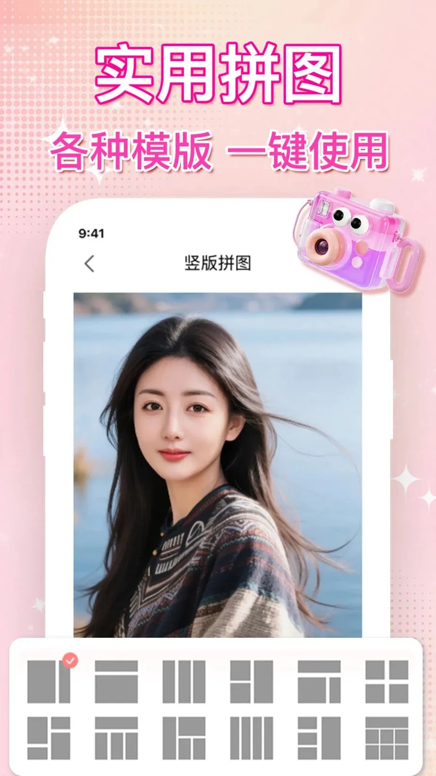 4、创意拼图模板,海量模板一键套用,竖版多格等多种版式随心选,轻松拼出高级感。