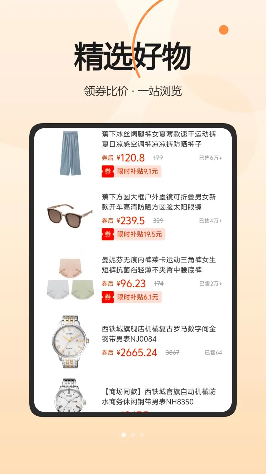 2、通过分类切换,浏览不同类目的优惠商品信息。