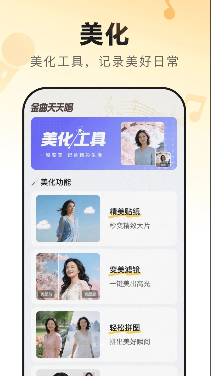 金曲天天唱2026可让用户随时随地放声歌唱,还能打卡各地风景留存旅途记忆。内置实用相机与精致滤镜,一键优化画面质感,操作简单。初版本上线,能让歌声与风景优雅呈现,方便轻松分享美好日常。