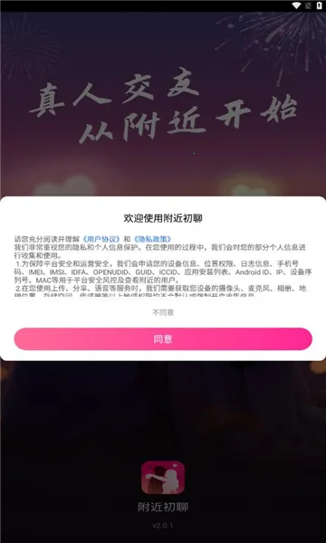附近初聊2026官方正版是专注陌生人聊天交友的软件,有全新模式,语音交友畅快。能视频、语音交友脱单,同城单身男女可在线交友,智能定位找有缘人,修复已知bug并优化体验,让聊天交友轻松方便。