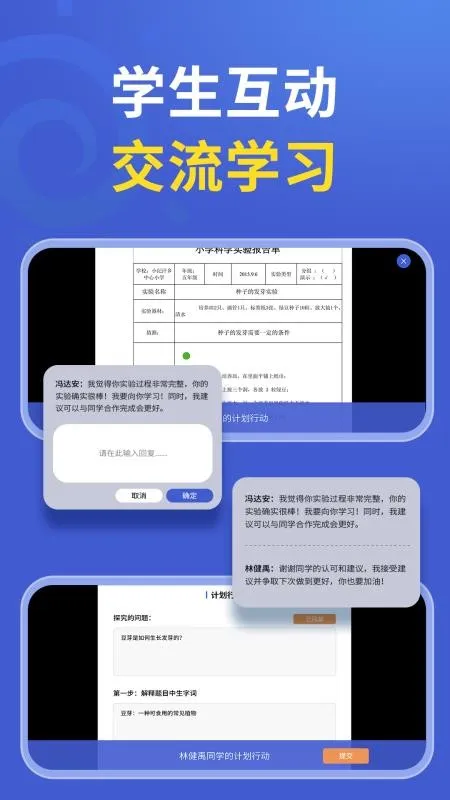 3、课堂互动独具特色,5步骤探究思路让教学更专业,学生间作业互评功能促进了交流学习。