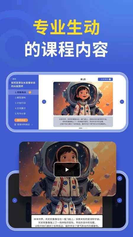 2、独创课堂5步骤探究思路,教师和学生能按此思路更专业地完成课程深入探究,还有学生之间作业互评功能,利于互相交流学习。